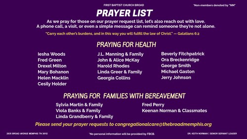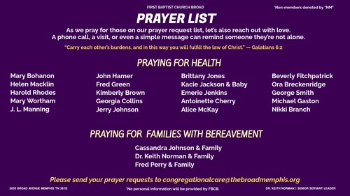 First Baptist Church Broad’s Congregational Care ministry provides compassionate, faith-based support to members during life’s challenges, offering prayer, guidance, and practical help rooted in Christian principles. Whether facing illness, grief, transitions, or personal hardship, members can rely on this ministry for spiritual encouragement and connection.