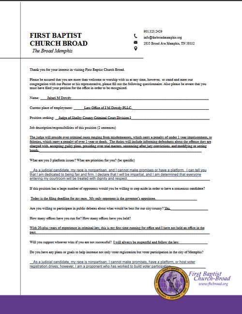 BELOW IS OUR POLITICAL QUESTIONNAIRE FOR CANDIDATES TO COMPLETE